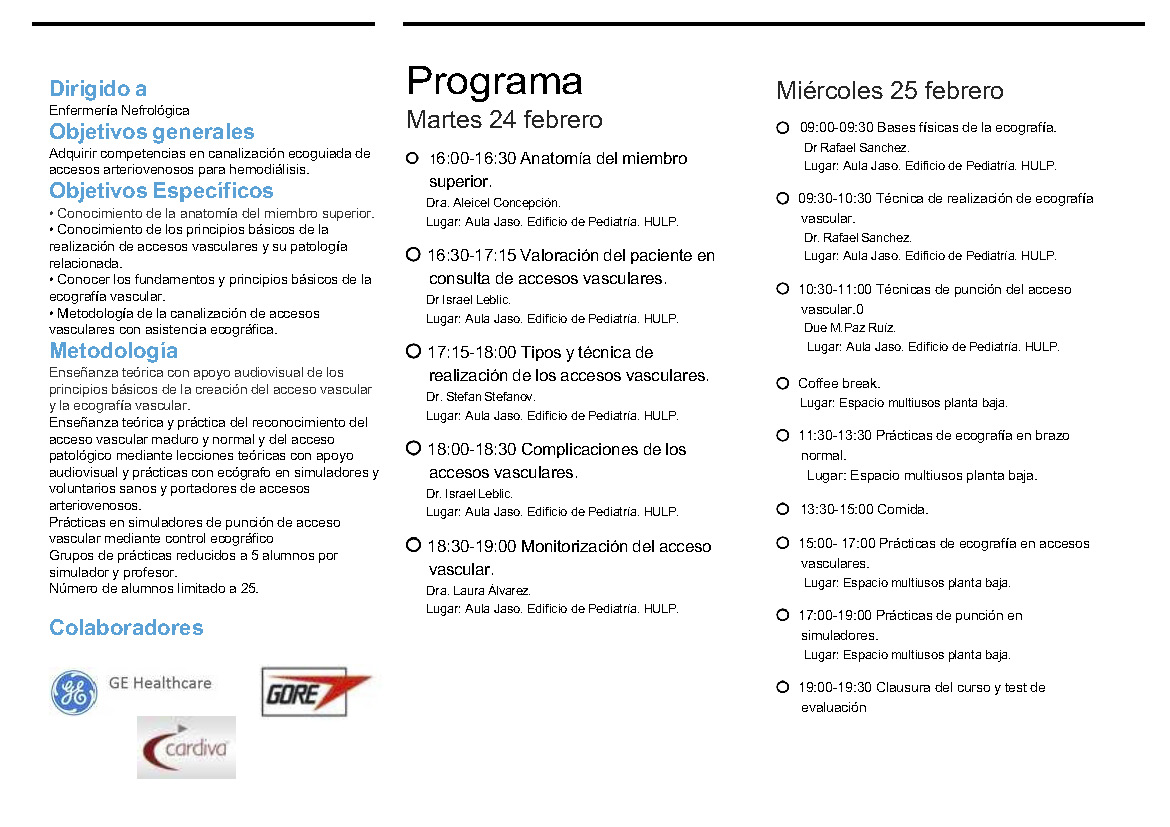 Objetivos generales: Adquirir competencias en canalización ecoguiada de accesos arteriovenosos para hemodiálisis.