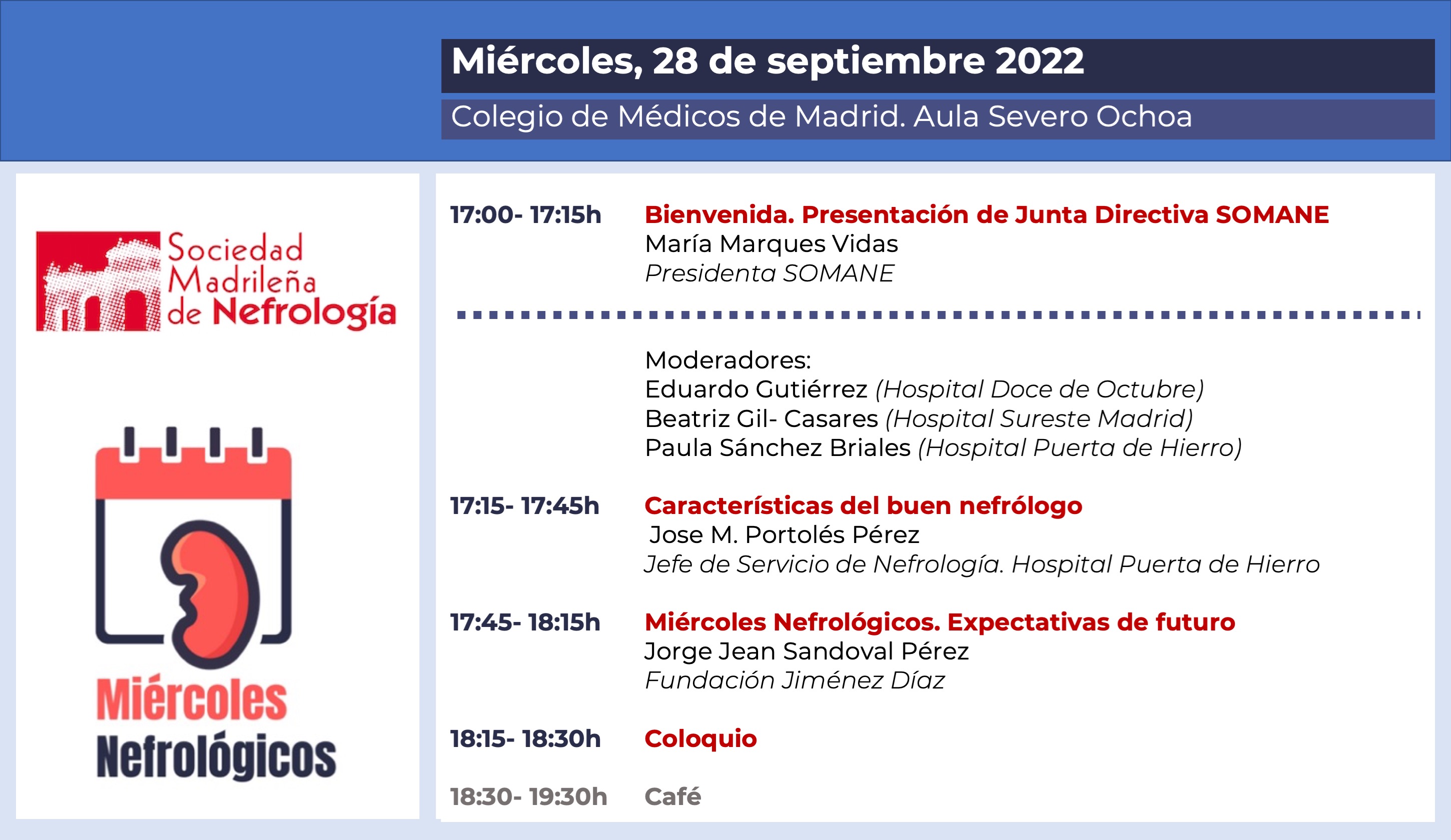En esta jornada de bienvenida hablaremos de los famosos Miércoles Nefrológicos, una iniciativa creada por y para residentes de nefrología de la Comunidad de Madrid, a la que os animamos a participar.